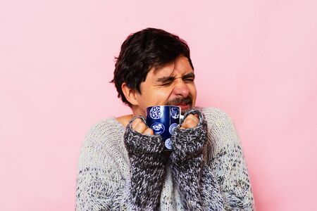 Man With Warm Clothing Feeling The Cold Inside House on the sofa