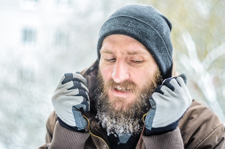 Frigid Conditions: Man Struggling with Cold