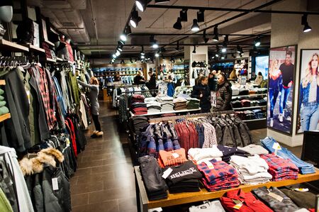 SAINT PETERSBURG, RUSSIA - CIRCA AUGUST, 2017: inside Pull&Bear store at Galeria shopping center. Pull&Bear is a Spanish clothing and accessories retailer