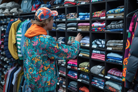 fast-fashion store, with overflowing shelves of trendy clothing and accessories, created with generative ai