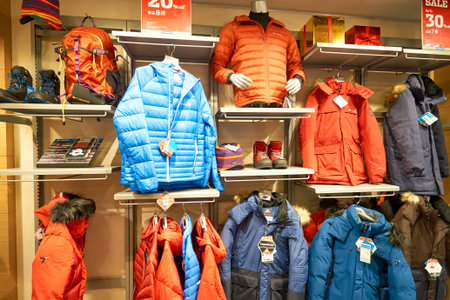 HONG KONG, CHINA - JANUARY 23, 2019: interior shot of Columbia Sportswear retail store at New Town Plaza shopping mall in Sha Tin.