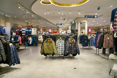 MOSCOW, RUSSIA - SEPTEMBER 14, 2019: interior shot of Colin's store at Salaris shopping mall in Moscow.