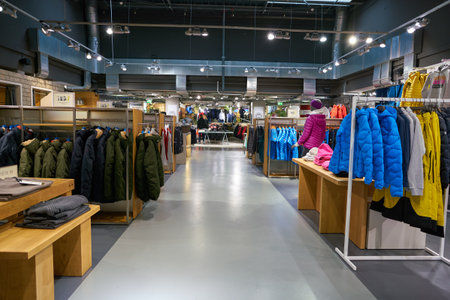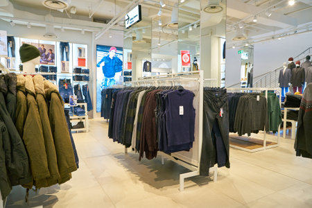MOSCOW, RUSSIA - CIRCA SEPTEMBER, 2018: interior shot of Uniqlo store in Moscow. Uniqlo Co. Ltd is a Japanese casual wear designer, manufacturer and retailer