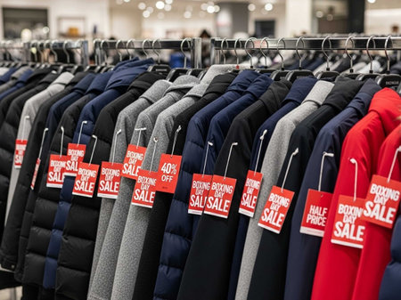 Clothes in a clothing shop during the sale