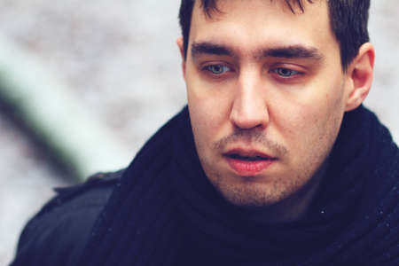 Portrait of a handsome young man in a winter coat. Outdoor portrait.