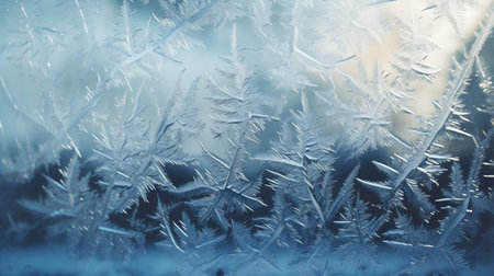Delicate ice crystals reflect light in intricate patterns, capturing the essence of winters beauty through an abstract frost effect.