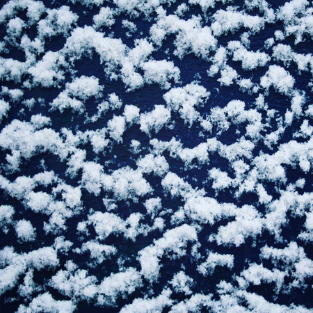 Close-up of a dark surface covered in tiny white snowflakes. High quality photo.