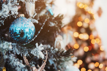 Closeup of Christmas-tree decorations, beautiful holiday backgroundor wallpaper