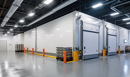 Warehouse Facility Showcases Advanced Cold Storage Solutions for Perishable and Pharmaceutical Goods in a Climate Controlled Environment Generative AI