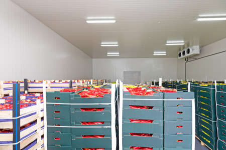 Peppers Vegetables in Boxes in Distribution Warehouse