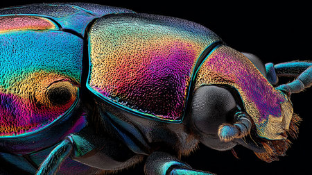 Iridescent beetle shell texture with vivid colors for creative design