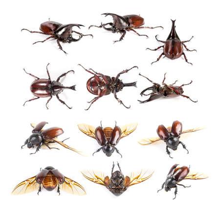 Rhinoceros beetle, Rhino beetle set on white background.