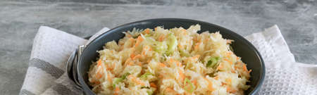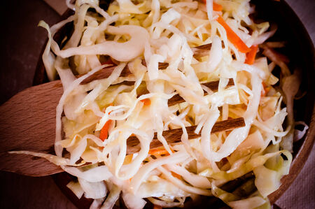 Homemade Sauerkraut with Carrot and Salad Cabbage. Fermented food.