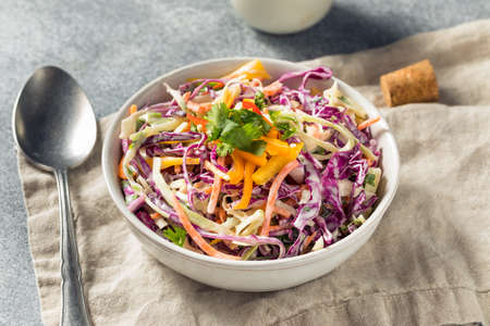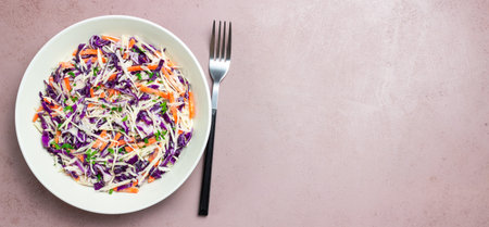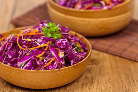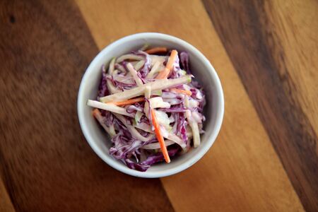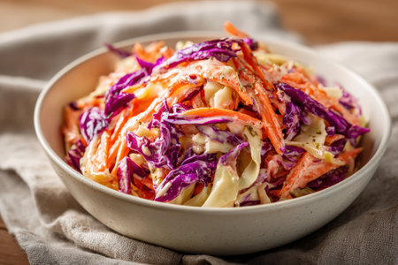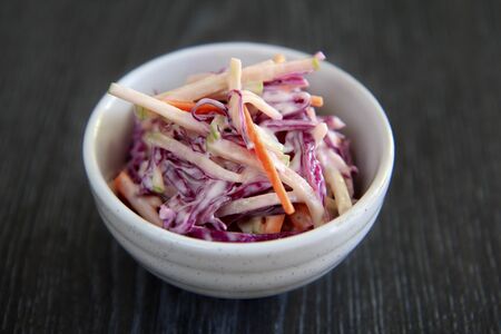 Fresh Coleslaw with Carrots and Purple Cabbage in Vegan Dressing