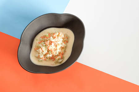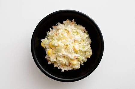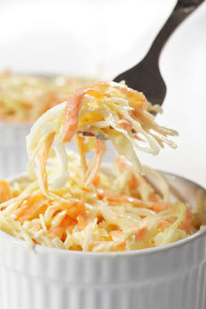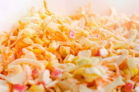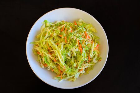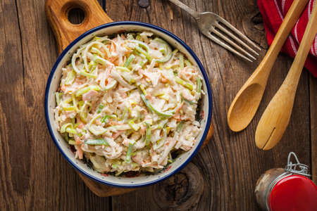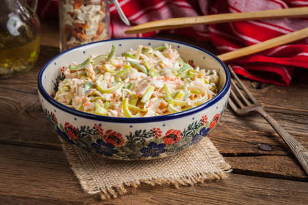 Coleslaw Salad from cabbage and carrots with dressing mayonnaise. Selective focus.