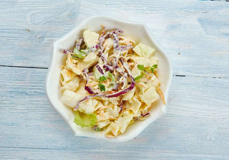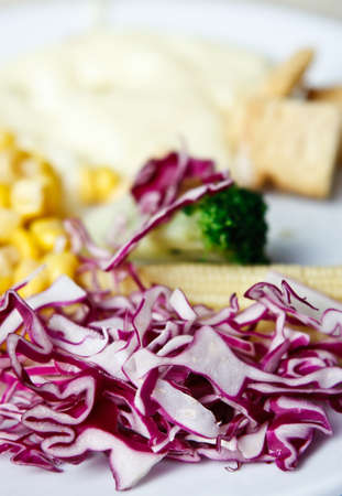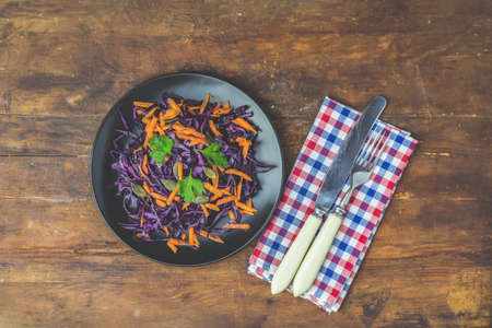 salad Cole slaw from a red cabbage. American cuisine. style vintage. selective focus. the image is tinted