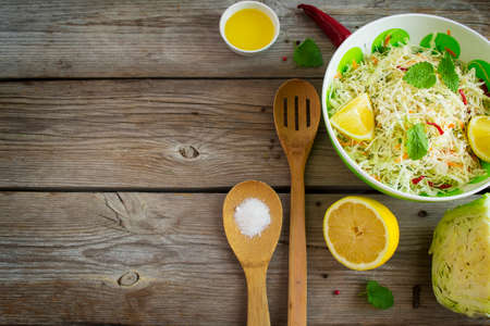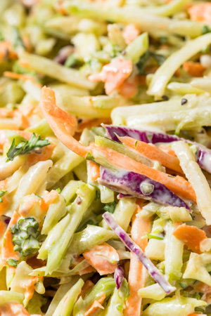 Healthy fresh coleslaw salad. Macro. Photo can be used as a whole background.