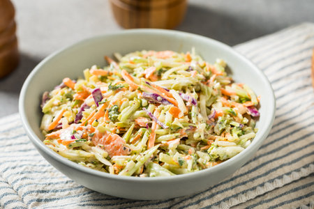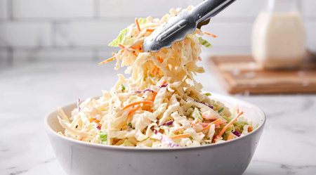 Freshly Prepared Coleslaw Salad with Shredded Cabbage, Carrots, and a Creamy Dressing