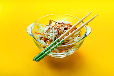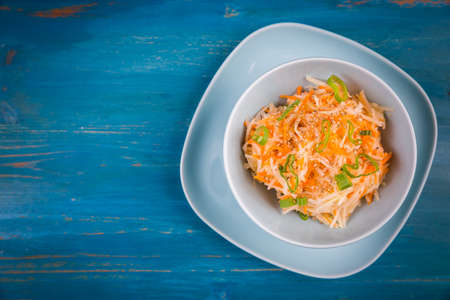 Healthy food - Dietary carrot and kohlrabi salad with shallots and sesame seeds