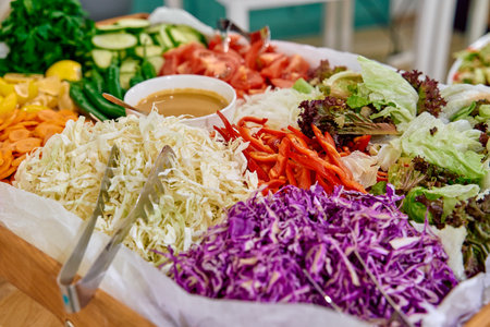 Vibrant and Colorful Salad Bar Featuring Fresh Vegetables, Crisp Greens, and a Variety of Accompaniments Ready for Healthy Eating Enthusiasts