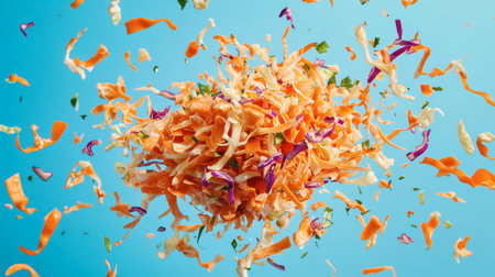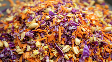 A vibrant mix of shredded carrots and purple cabbage, perfect for healthy meals or salads. This colorful vegetable blend adds texture and flavor to any dish.
