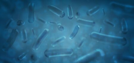 Bacteria on blue background. 3d illustration. Escherichia coli rods.