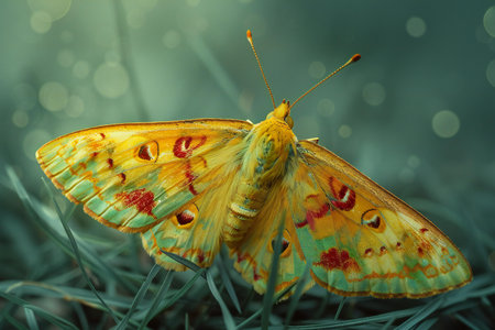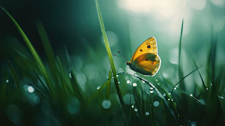 Beautiful butterfly on green grass with bokeh, closeup