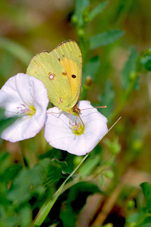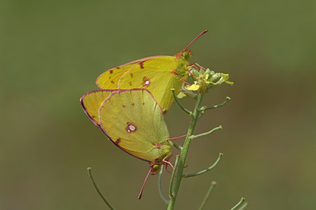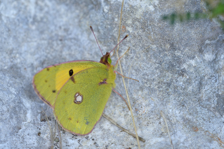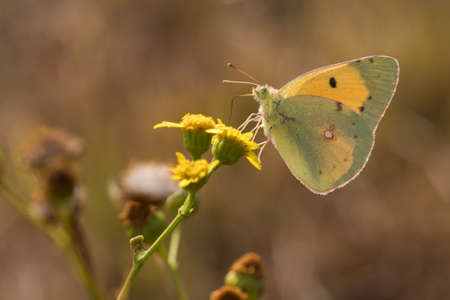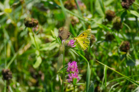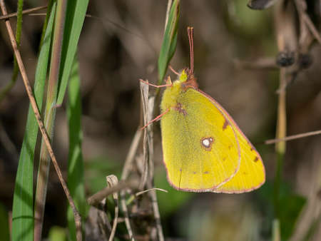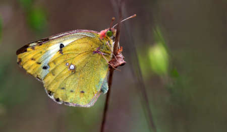 Yellow Glory butterfly on the plant - Colias crocea