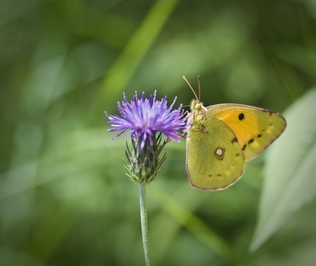 A Colias butterfly on a purple meadow flower