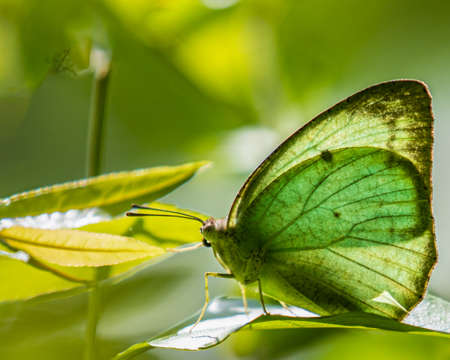 A Catopsilia pyranthe butterfly white and greenish look in back light
