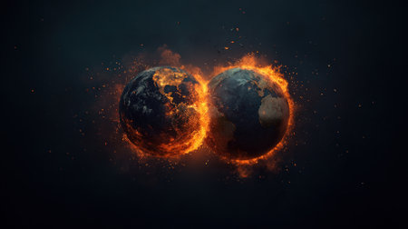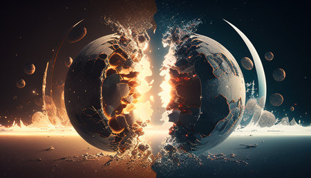 parallel earths colliding apocalypse digital art illustration, Generative AI