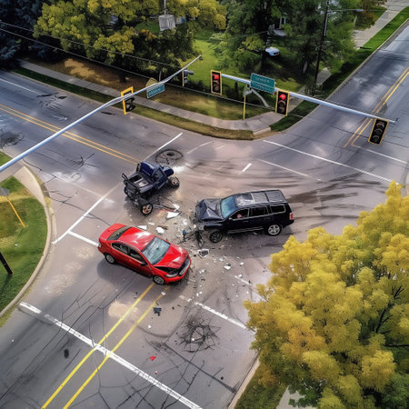 Small vehicles describing a traffic accident due to excessive speed and wrong overtaking or violation of rules