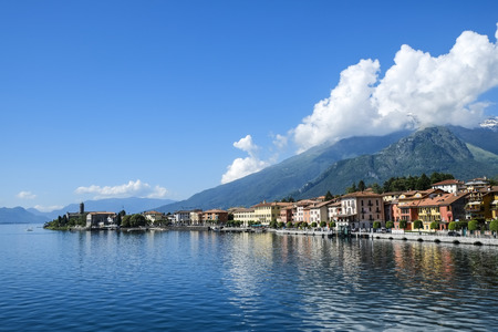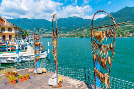PESCHIERA MARAGLIO, ITALY, JULY 16, 2019: Lakeside view of Peschiera Maraglio village at Monte Isola, Italy