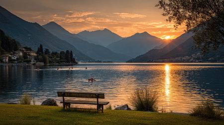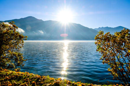 Sunset at Lake Como in Lombardy, Italy. Lake Como is the largest lake in Italy.