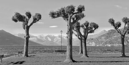 Embankment of the town of Menaggio against the backdrop of mountains. Lake Como, Italy