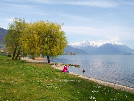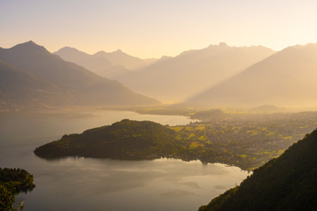Beautiful view of Lake Maggiore and mountains in Italy.