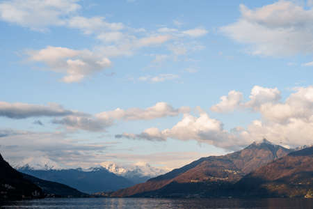 Como Lake, Italy. Panoramic View on Alps. Cloudy Sky.