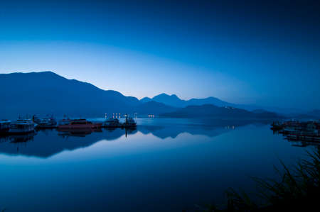 Levico, Italy - August 6, 2015: Boats moored on Lake Levico, Trento.