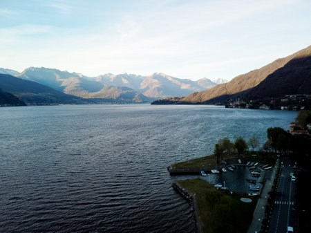 Panorama of Lake Como, with Dervio and the northern part of Lake Como.