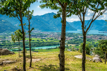 Lake Como, photographed from the church of San Miro, in Gera Lario. View of the towns and mountains of the upper lake and the Mera river.