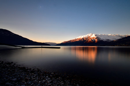 Sunset at Lake Como in Lombardy, Italy. Lake Como is the largest lake in Italy.