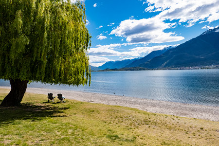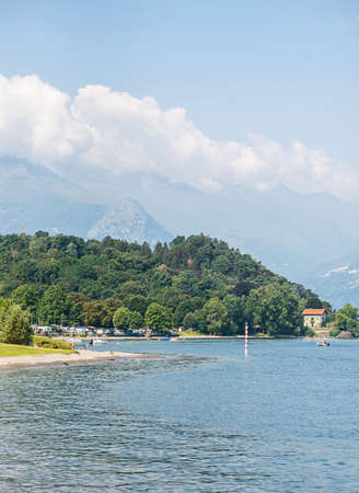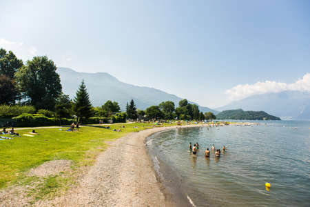 Lake Como. Italy - July 21, 2019: Recreation Area of Colico City. Beach on Lake Como in Italy.