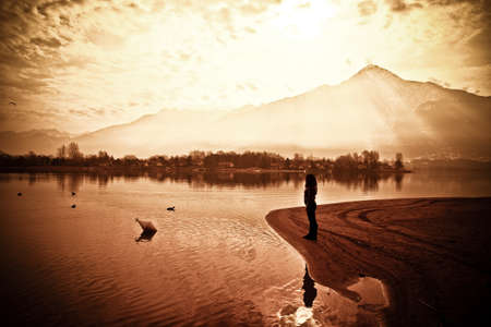 Como lake, shores facing the sunset