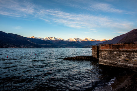 Scenic sunset by the embankment in Bellagio, one of the most picturesque towns on the shore of Lake Como. Charming location with typical Italian atmosphere. Bellagio, Lombardy, Italy.