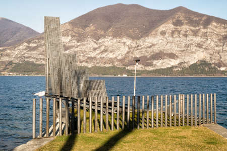 ISEO, ITALY - January, 2018. View of the sculpture dedicated to water on the Iseo lake