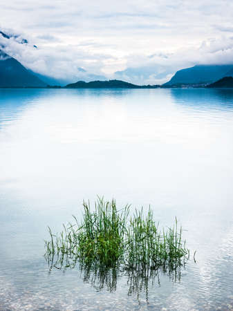 Italy view of a mountain lake lago di summer in cloudy weather.