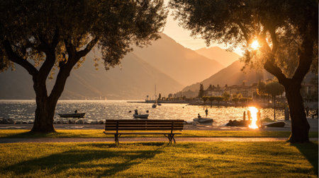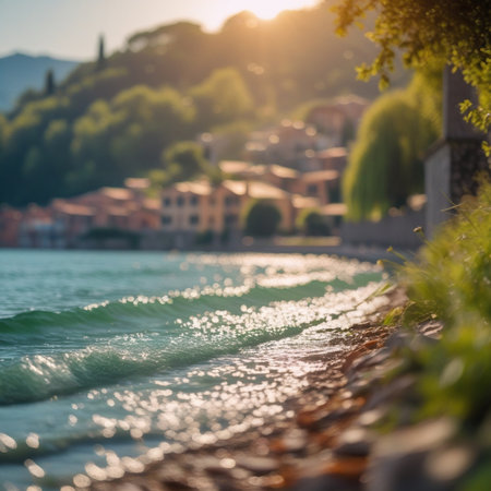 Landscape of Lake Garda at sunset, Italy. Selective focus.