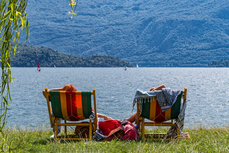 Relaxation scene on a beach of Lake Como
