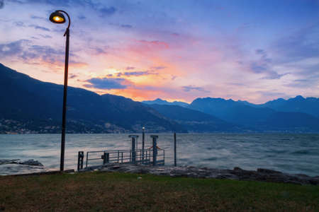 Sunset on Lake Como, Lombardy, Italy. Beautiful view of the lake.