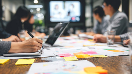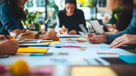 A collaborative workspace filled with ideas, papers, and creativity as teams brainstorm and design innovative solutions.